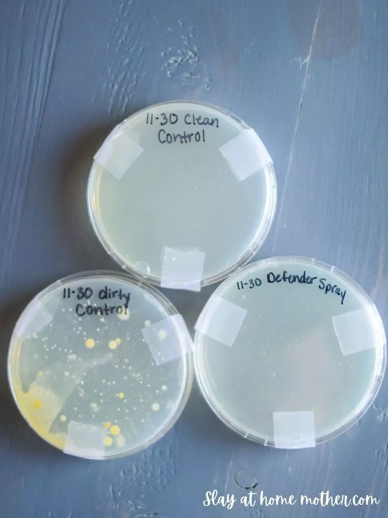 This natural disinfectant spray has not been tested for safety or effectiveness, and the Petri dishes shown in this post do not substitute any official testing or ruling completed by the FDA at the time of this writing or in the future.