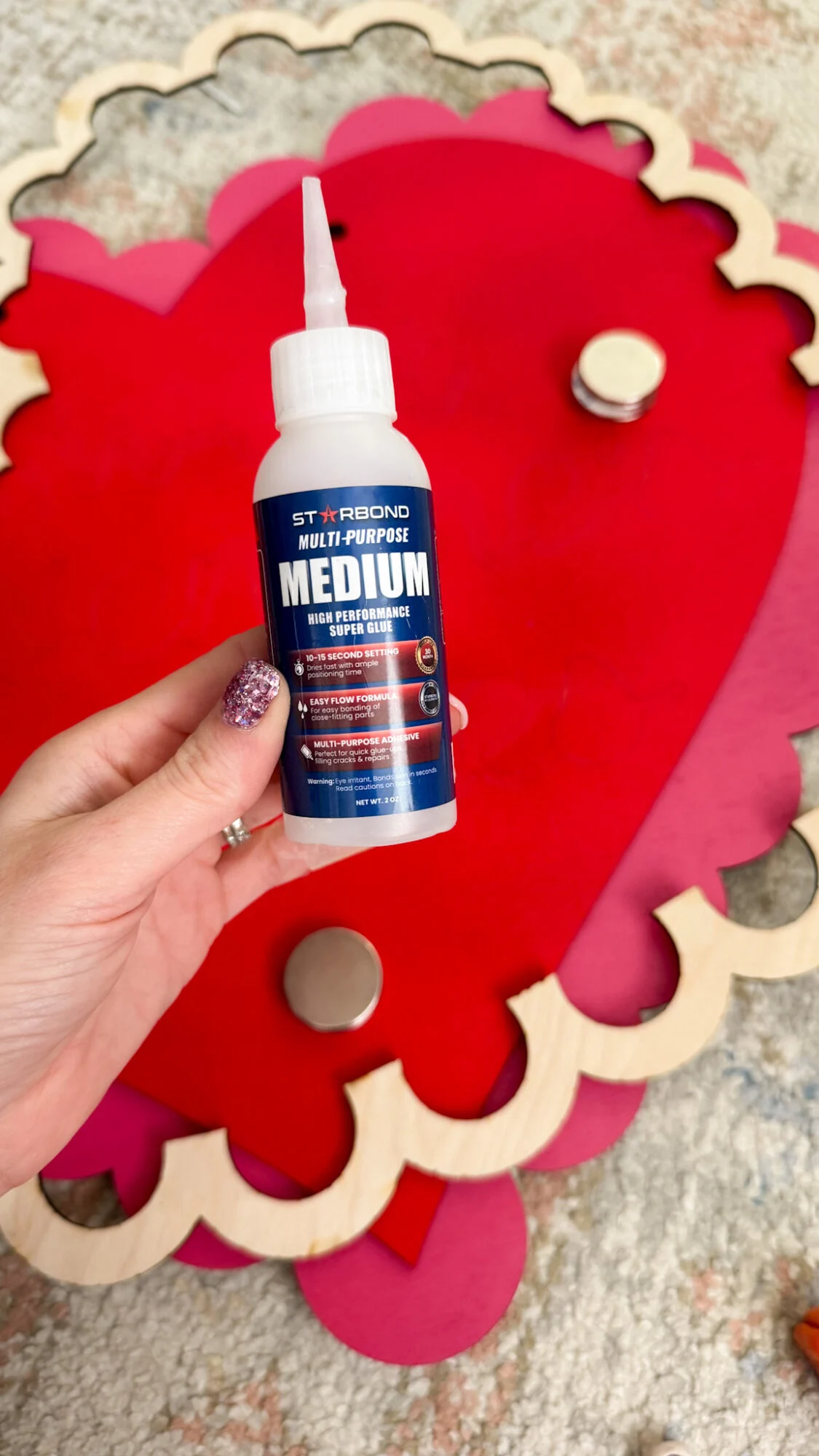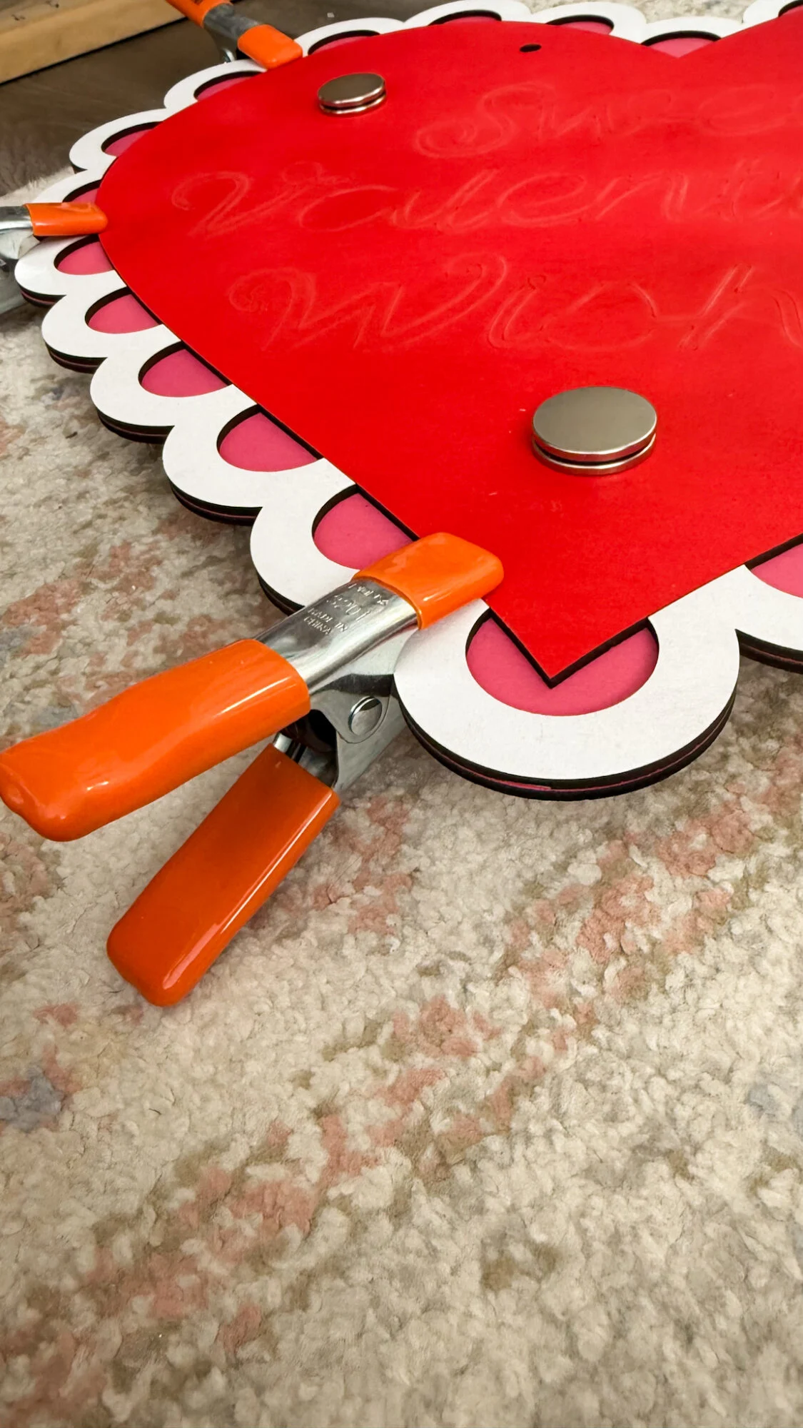 The magnets help with the center of the heart adhering. For my magnets, I place doubled-up magnets on the bottom as well as the top to really pull those wood layers together while the glue sets.